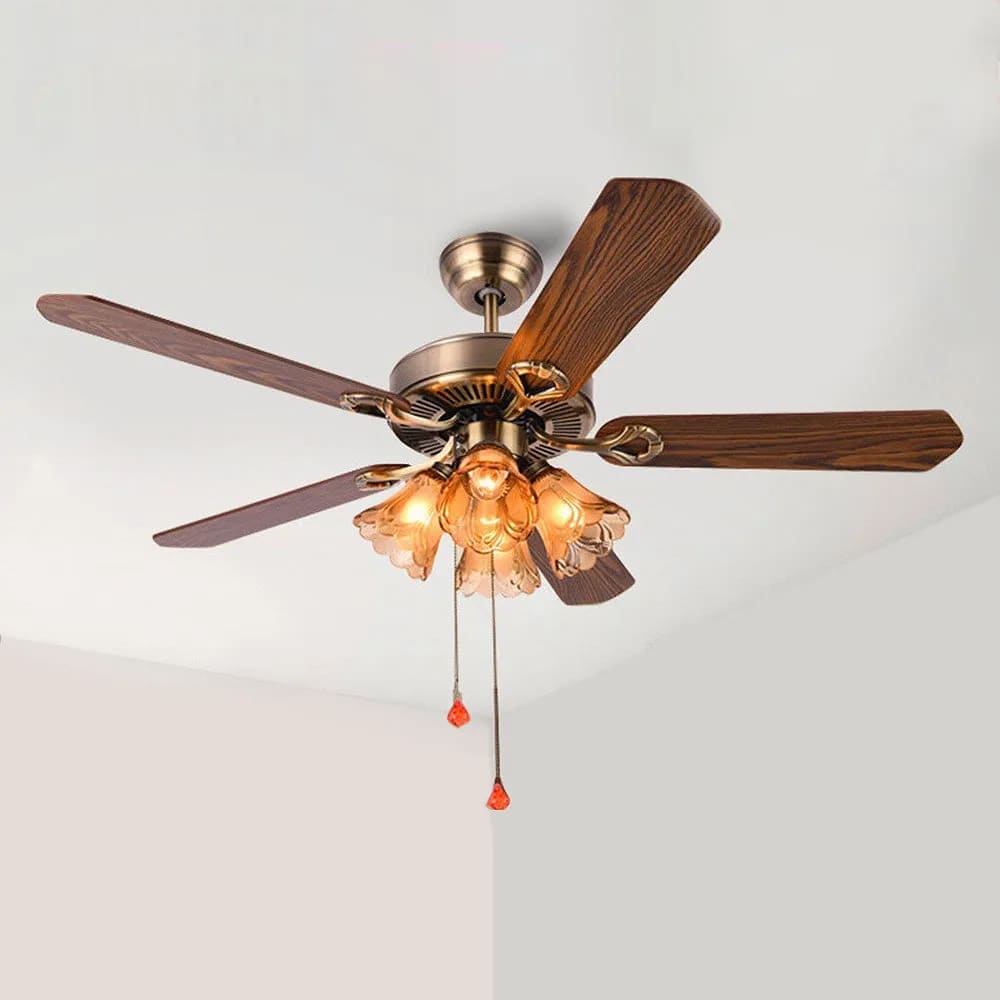 Vintage Iron & Wood Ceiling Fan with Light | Retro Wooden Fan with Glass Shade
